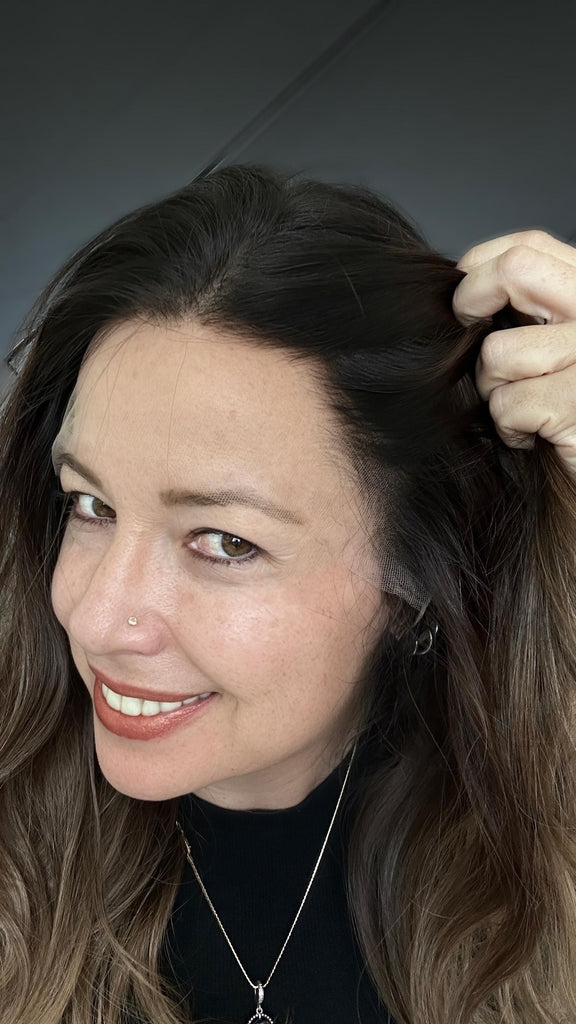 This color features a rich brunette base with soft, hand-painted caramel highlights, adding dimension and warmth for a modern, sun-kissed look.