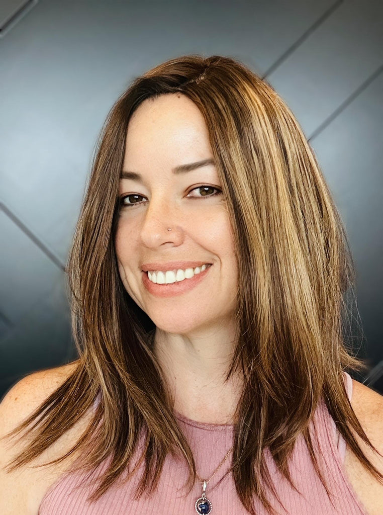 • Color: A warm brunette base with golden blonde highlights, creating depth, dimension, and a sun-kissed glow that flatters many skin tones