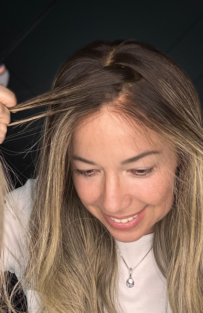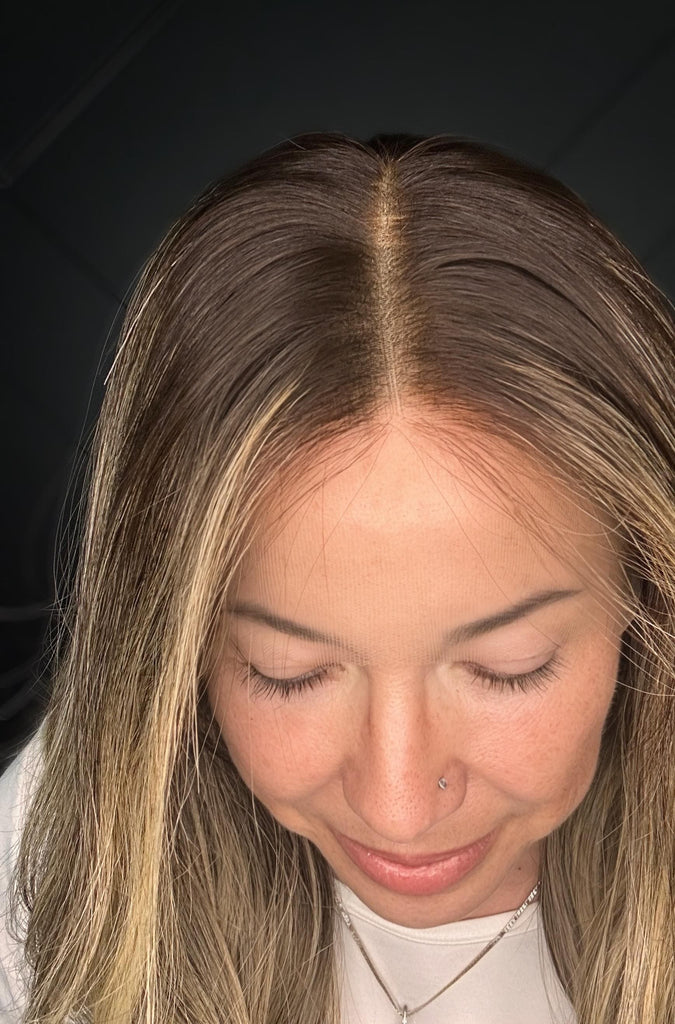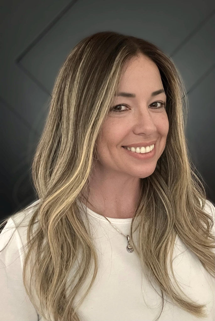 This piece features a dimensional blended blonde balayage, with soft waves and deeper roots that make it incredibly easy to wear and style. Whether you part it down the middle or brush it back, the 180% density gives you full volume without bulk, while maintaining that coveted soft, flowy movement.